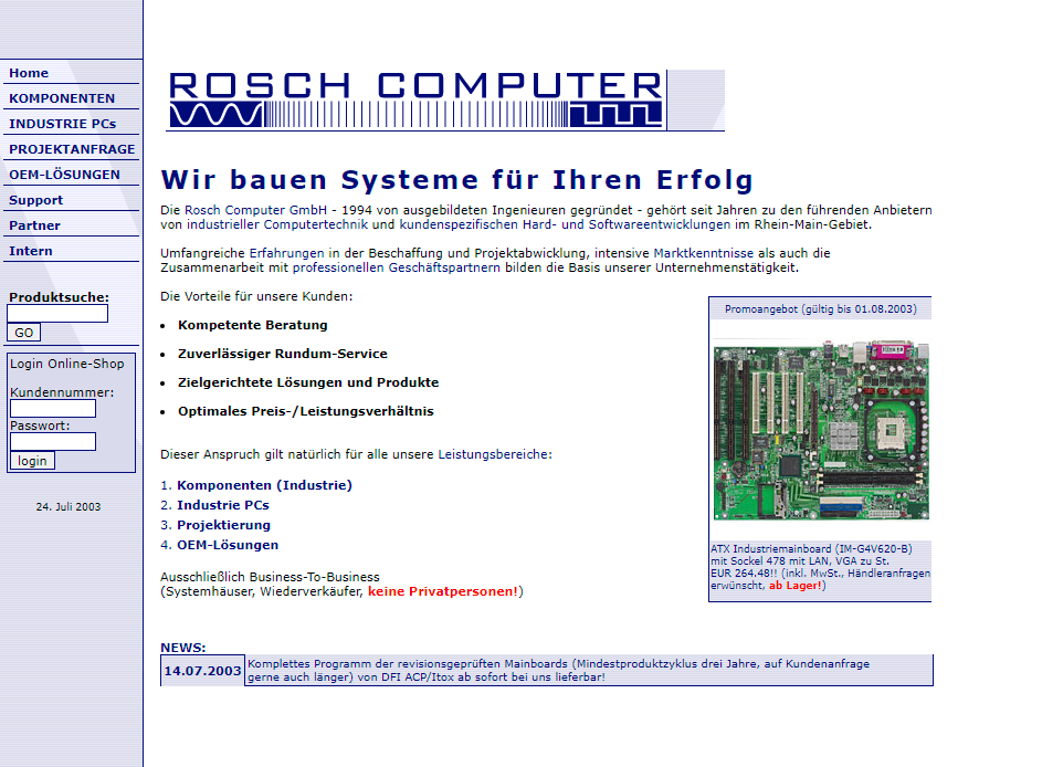 When Dipl.-Inf. Roman Scheibert founded Rosch Computer in 1994, he had a goal: to create an offering in the field of industrial computers and IPC components that meets the latest technological know-how and offers an excellent price-performance ratio.