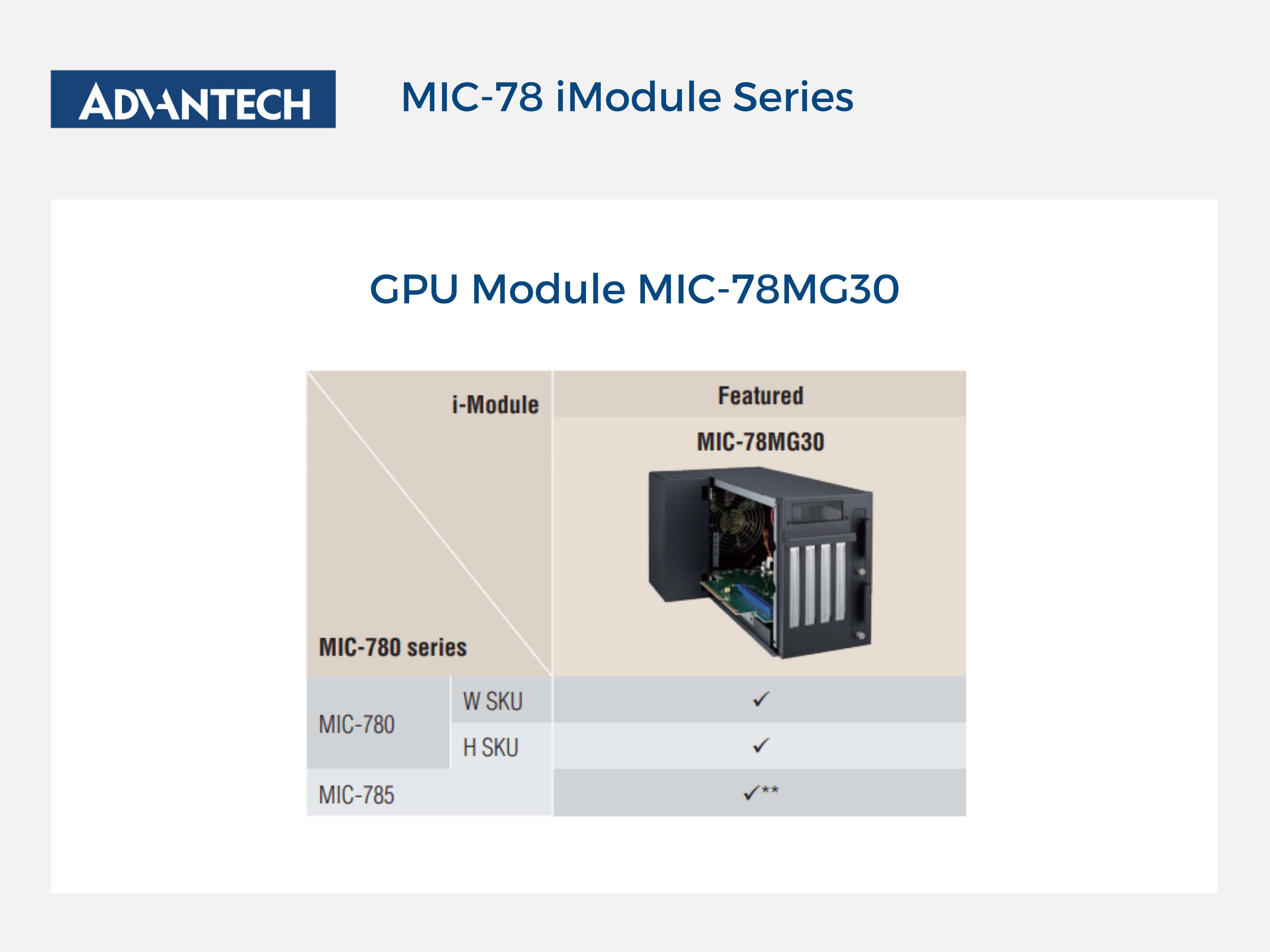 Advantech, Taipei, Taiwan, 26.01.2026 - Advantech (2395 TW), a leading provider of industrial edge computing platforms, announced the launch of new expansion modules for the MIC-780 modular industrial computer. The new lineup includes the MIC-78MG30 GPU module and the MIC-78M PCIe module series (MIC-78M20/20-01, MIC-78M10, and MIC-78M40-01), designed to deliver scalable compute performance and flexible I/O expansion for industrial edge AI applications.