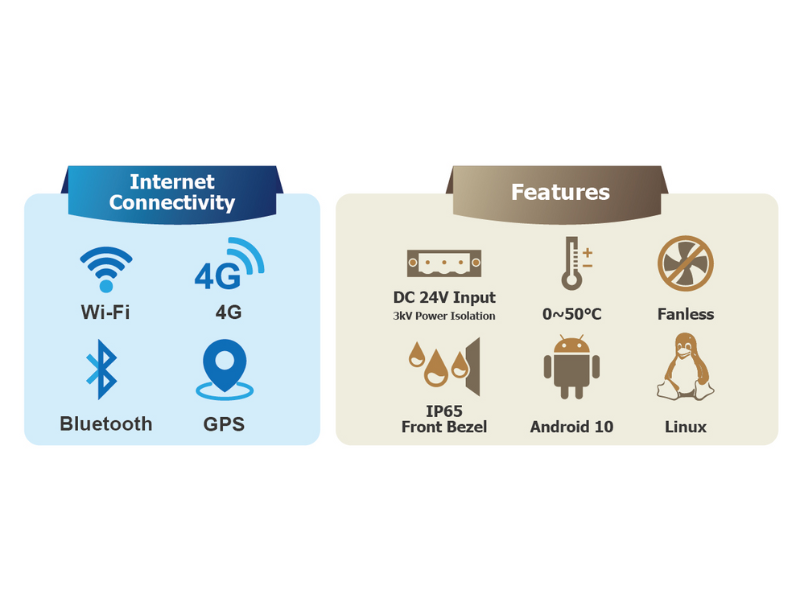 ARMPAC-6B comes in fan-less design but is able to operate under wide range temperature from 0 ~ 50℃. It requires ultra-low power consuming with DC 24V input with 3kV power isolation as well. Furthermore, ARMPAC-6B provides flexible software customization service with multiple operating system, such as Android 10 and Yocto Linux.