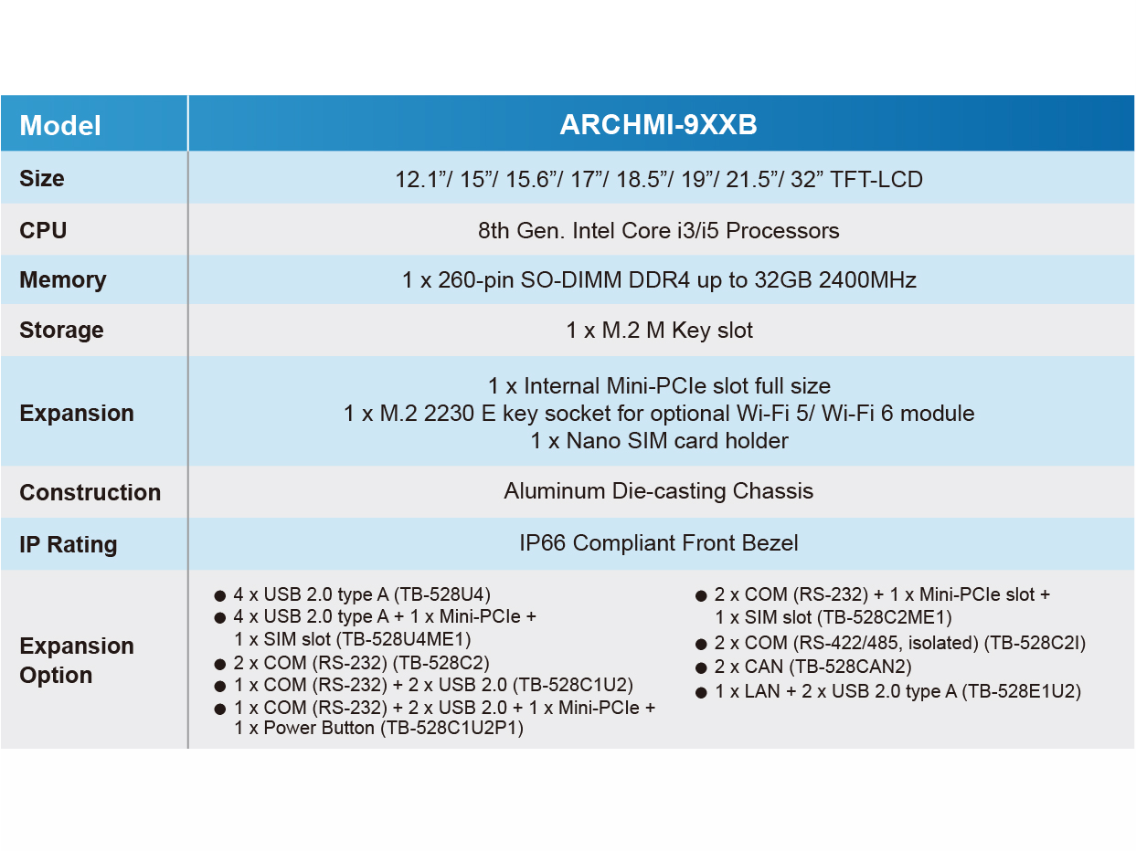 Aplex, Taipei, Taiwan, 15.11.2021 - APLEX Technology Inc., a global industrial computer products solutions provider, is excited to announce our new upgraded ARCHMI-9XXB with new CPU platform - 8th Gen. Intel Core i3/i5 processors (codename: Whiskey Lake).