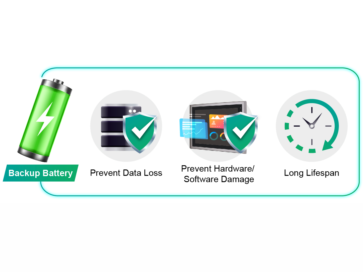 ARCHMI-9XXB is a rugged design HMI which equipped with IP66 flat front panel compliant with aluminum die-casting to resist dust and water. Resistive touch screen and 7H hardness projective capacity touch screen are also available for different operation requirements. Moreover, ARCHMI-9XXB can prevent the damage from sudden shut down and power failure by optional featuring with backup battery. The backup battery will immediately provide a short time of power to the ARCHMI-9XXB system when outage occurs, so that there will have sufficient time for equipment to be shut down properly. In addition, it can also prevent data loss, hardware/software damage and is able to offer facilities a stable and long lifespan.