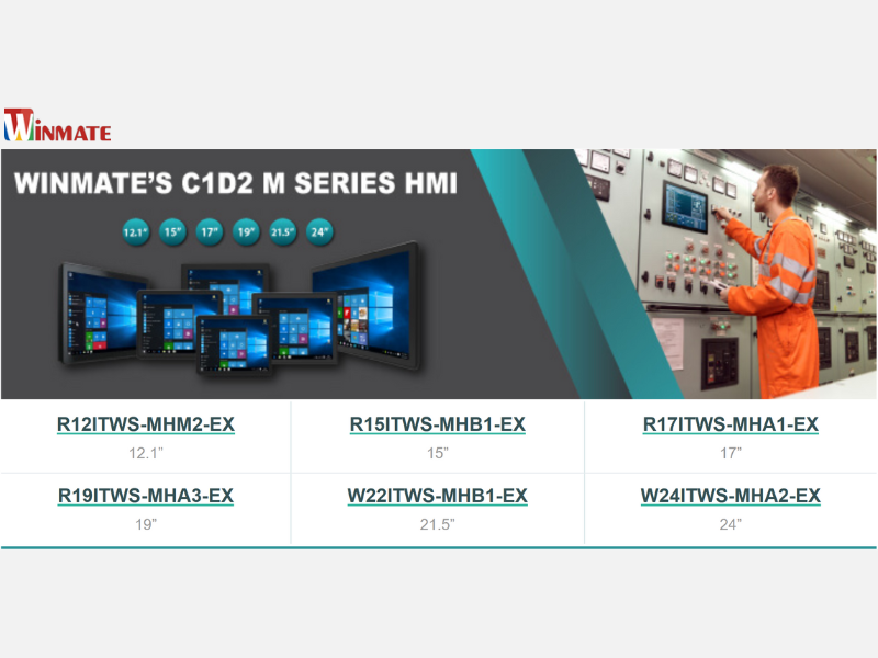 Winmate’s C1D2 M Series HMI (R12ITWS-MHM2-EX, R19ITWS-MHA3-EX, R15ITWS-MHB1-EX, W22ITWS-MHB1-EX, R17ITWS-MHA1-EX and W24ITWS-MHA2-EX) is engineered to meet these industry challenges, offering cutting-edge technology, superior durability, and certified safety compliance for mission-critical applications. With compliance to Class 1 Division 2 and IECEx standards, these HMIs are designed for explosive and hazardous environments, ensuring reliable operation where safety and efficiency are critical.
