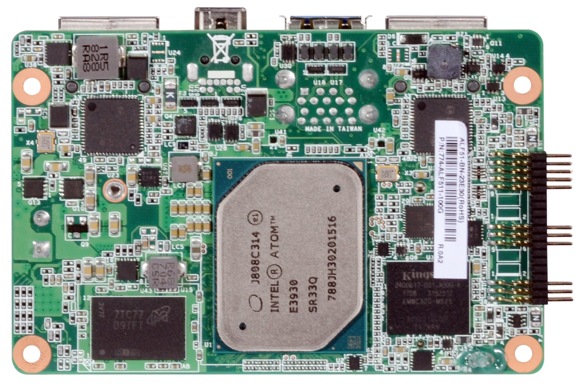 1.8" Industrial Mainboards, Intel Atom x5-E3930, SoC (System on a Chip), 2 GB, 2 x G-LAN (Back side), 2 x USB (Back side), 1 x USB (internal), 64 GB eMMC, Digital I/O (8-Bit), 1 x Mini-PCIe, Power Supply DC 12V