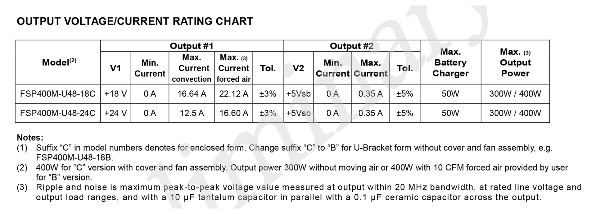 SKU / Item NumberFSP400M-U48FSP400M-U48-18C, FSP400M-U48-24C