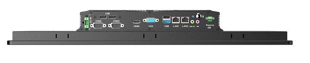 21.5" TFT LCD Panel-PC, Intel Core i7-10710U, Touchscreen (Analog Resistive), Passive cooled, IP65 (front), SoC (System on a Chip), 260-pin DDR4 SO-DIMM, 2 x G-LAN (Back side), 4 x USB (Back side), 1 x Mini-PCIe, Power Supply DC 12V